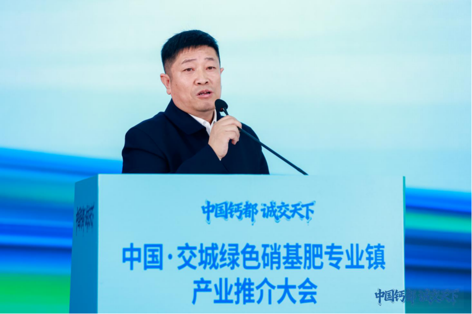 交城县深耕硝基肥产业已逾半个世纪,特别是进入新世纪以来快速发展,已成为全国乃至全球知名的核心产区,“世界钙肥看中国、中国钙肥看交城”的美誉远播海内外。交城县委副书记夏韩卿在致辞中指出,目前,全县拥有硝基肥企业33家,产能达300万吨,年产值近60亿元,占县域工业经济比重达20%;累计授权专利246项,可生产35种以上硝基类产品。其中,硝酸钙、硝酸铵钙等钙肥产品占到国内80%、国际60%以上的市场份额,先后被商务部认定为国家级(新型肥料)外贸转型升级基地,被科技部确定为山西省首家创新型县,被中国氮肥工业协会授予“中国钙都”称号。