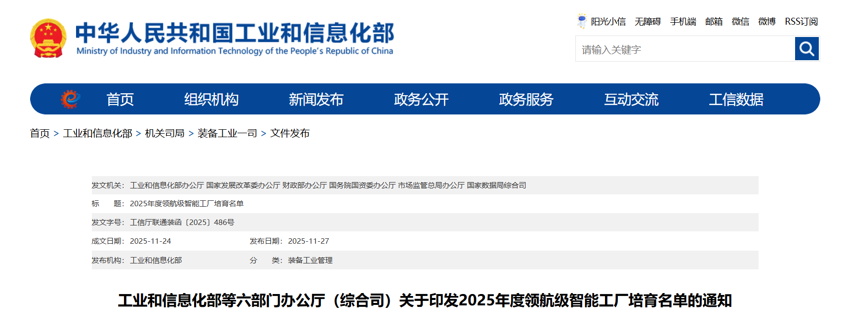 为贯彻落实《制造业数字化转型行动方案》,按照《“十四五”智能制造发展规划》任务部署,打造智能制造“升级版”,经省级有关部门推荐、专家评审、现场核查、网上公示等程序,现将2025年度领航级智能工厂培育名单印发给你们,请加强指导和服务,鼓励给予相应政策支持。