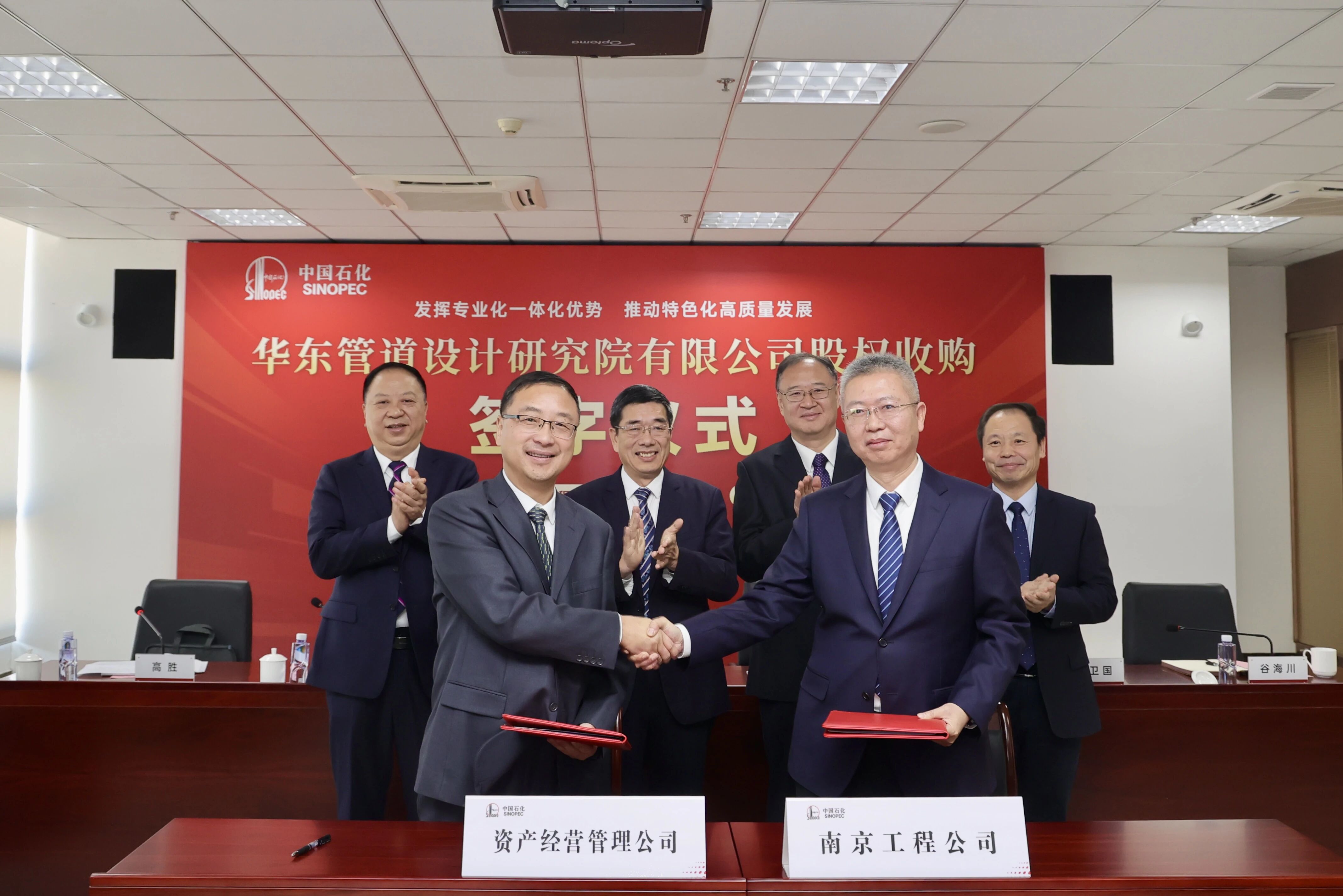 1月8日,中石化炼化工程集团全资子公司南京工程公司收购华东管道设计研究院。本次收购标志着华东管道设计院正式加入中石化炼化工程集团大家庭,双方将通过整合优质资源、实现优势互补,进一步补强产业链、增强整体竞争力。集团公司财务部二级协理员陈学,炼化工程集团总经理张新明,资产经营管理公司资产运营室经理高卫国,公司领导周赢冠、高胜,华东管道设计院院长谷海川共同见证。