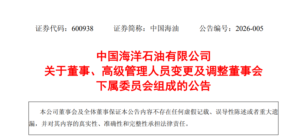 3月20日,中国海油对外宣布多项管理层人事调整。
