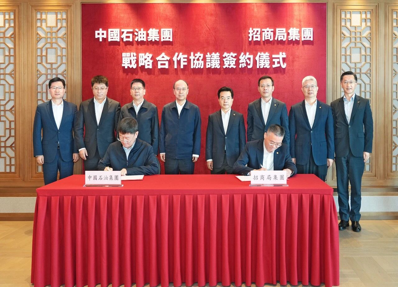 中国石油集团副总经理任立新与招商局集团副总经理冯波鸣代表双方签署协议。中国石油集团副总经理张道伟,招商局集团总会计师吴泊,以及双方有关部门负责人参加会见。