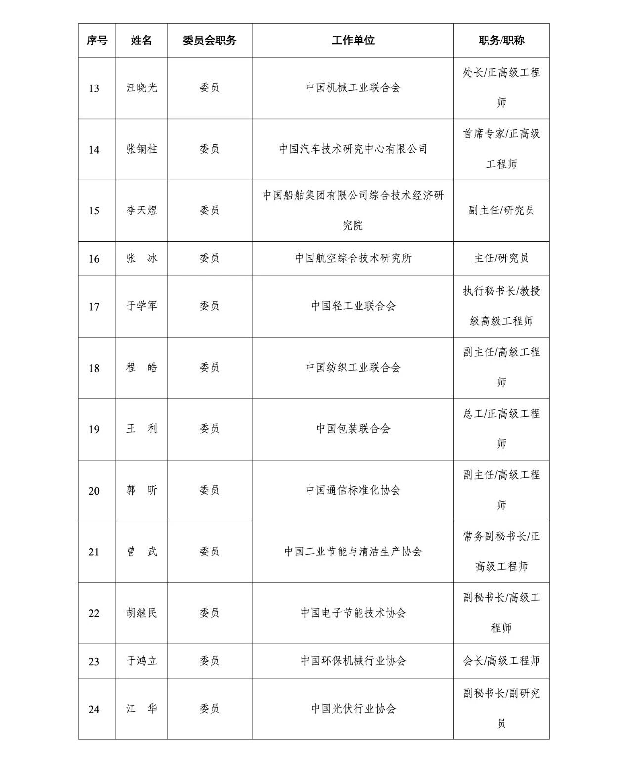 工业和信息化部绿色低碳标准化技术委员会委员名单公示
