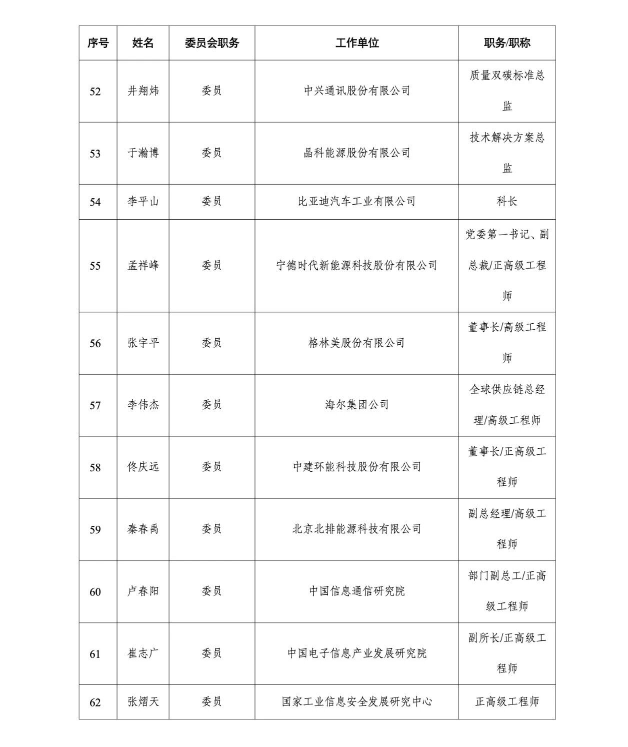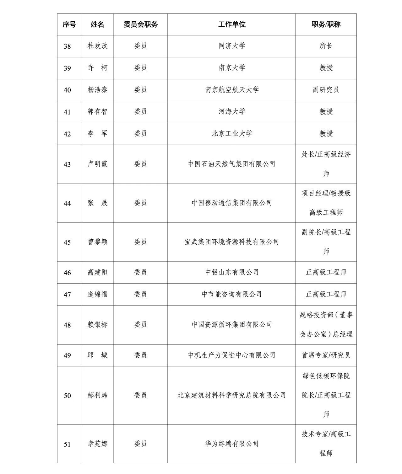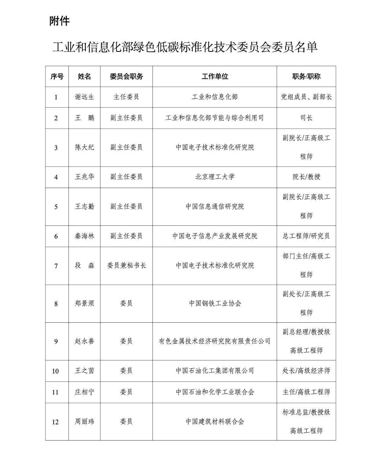 附件:工业和信息化部绿色低碳标准化技术委员会委员名单