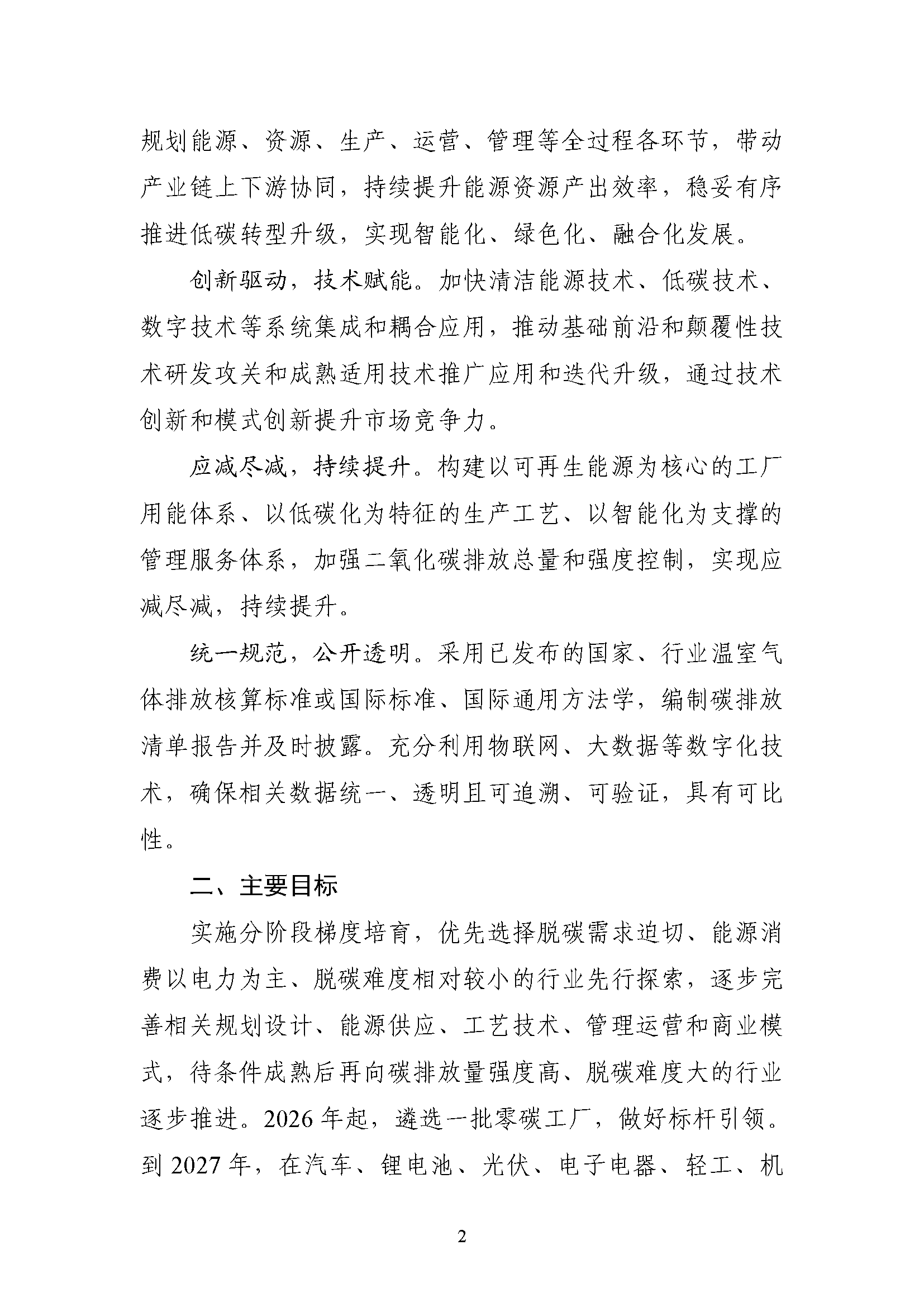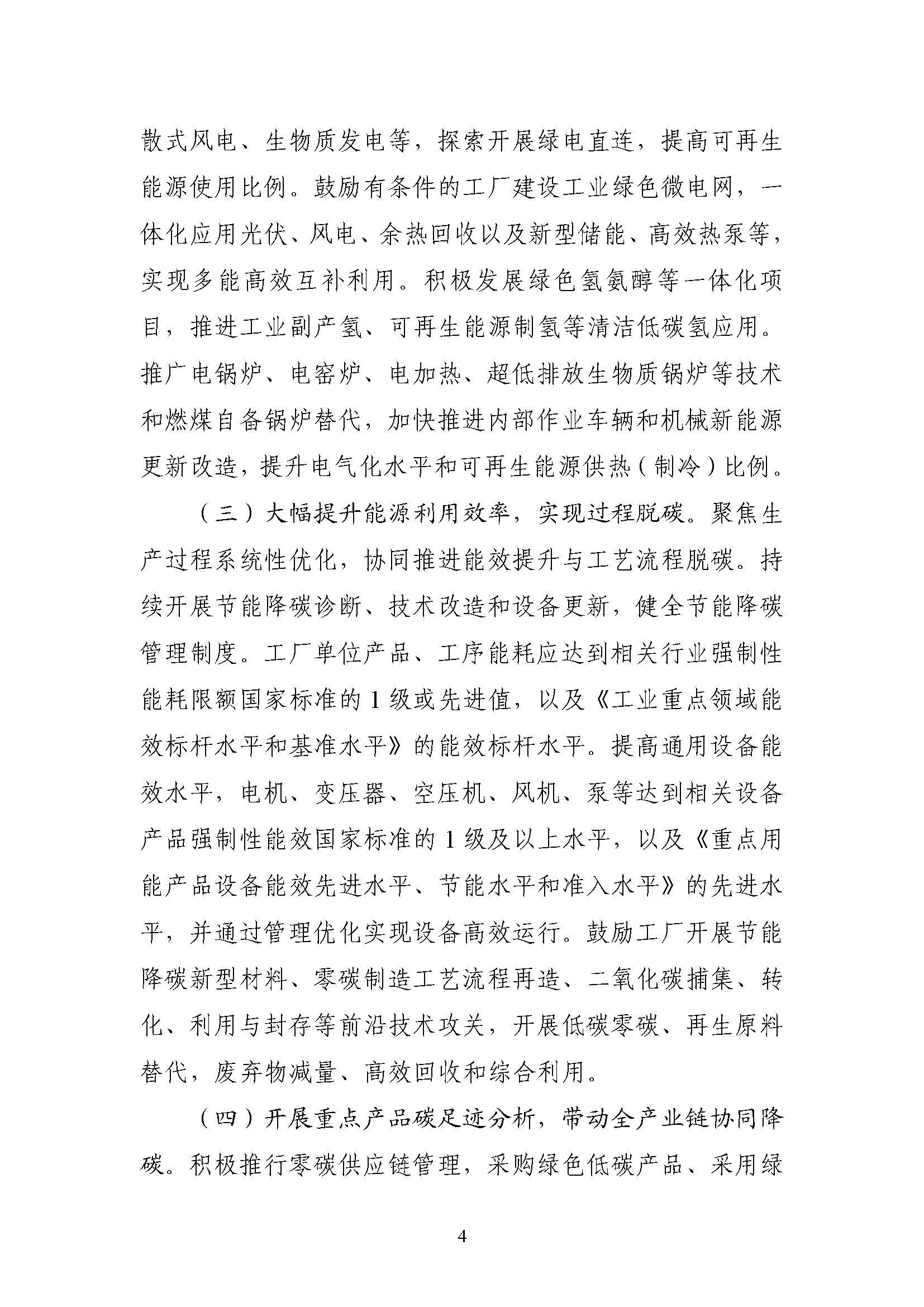 为坚持以习近平新时代中国特色社会主义思想为指导,深入贯彻习近平生态文明思想,全面贯彻党的二十大和二十届历次全会精神,落实国务院办公厅《制造业绿色低碳发展行动方案(2025—2027年)》,深挖工业和信息化领域节能降碳潜力,带动重点行业领域减碳增效和绿色低碳转型,培育发展新质生产力,工业和信息化部、国家发展改革委、生态环境部、国务院国资委、国家能源局共同研究制定了《关于开展零碳工厂建设工作的指导意见》。现印发给你们,请结合实际,认真贯彻落实。