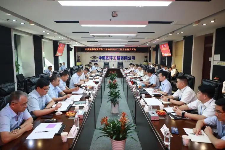 中国中煤首席专家、煤化工事业部总经理张义亭,陕西公司副总经理、煤化工二期指挥部总指挥周永涛,中石化广州工程有限公司党委书记、董事长韩卫国参加开工会,中石化广州工程有限公司作为总承包单位介绍了烯烃分离装置和液体储运工程项目开工报告、长周期设备和项目计划等情况。各方围绕项目组织架构、设计、采购及施工安全、质量、进度等重难点进行深入研讨,并就工程建设重要节点达成共识。