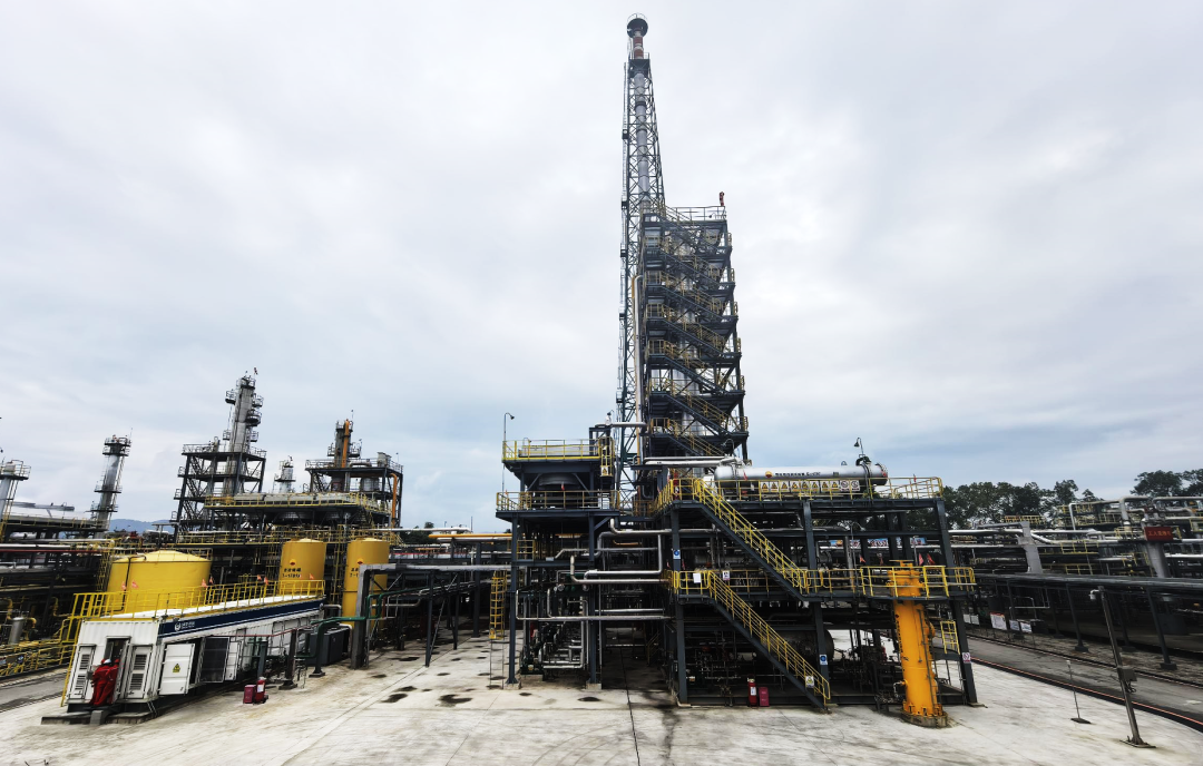 面对项目工期紧、工作界面复杂、边施工边生产等挑战,西南分公司深入贯彻“六化”建设理念,将碳捕集、分子筛脱水等核心装置设计为7个橇组模块,推行“工厂制造+现场深度预制”模式,实现土建与装置作业齐头并进。同时依托自主开发的材料控制平台统筹全流程,高效完成近2万达因焊接工作,较传统模式节约工期30%。针对三塔超大超重模块运输难题,通过多方踏勘复核、协调超限许可,保障核心设备顺利进场。