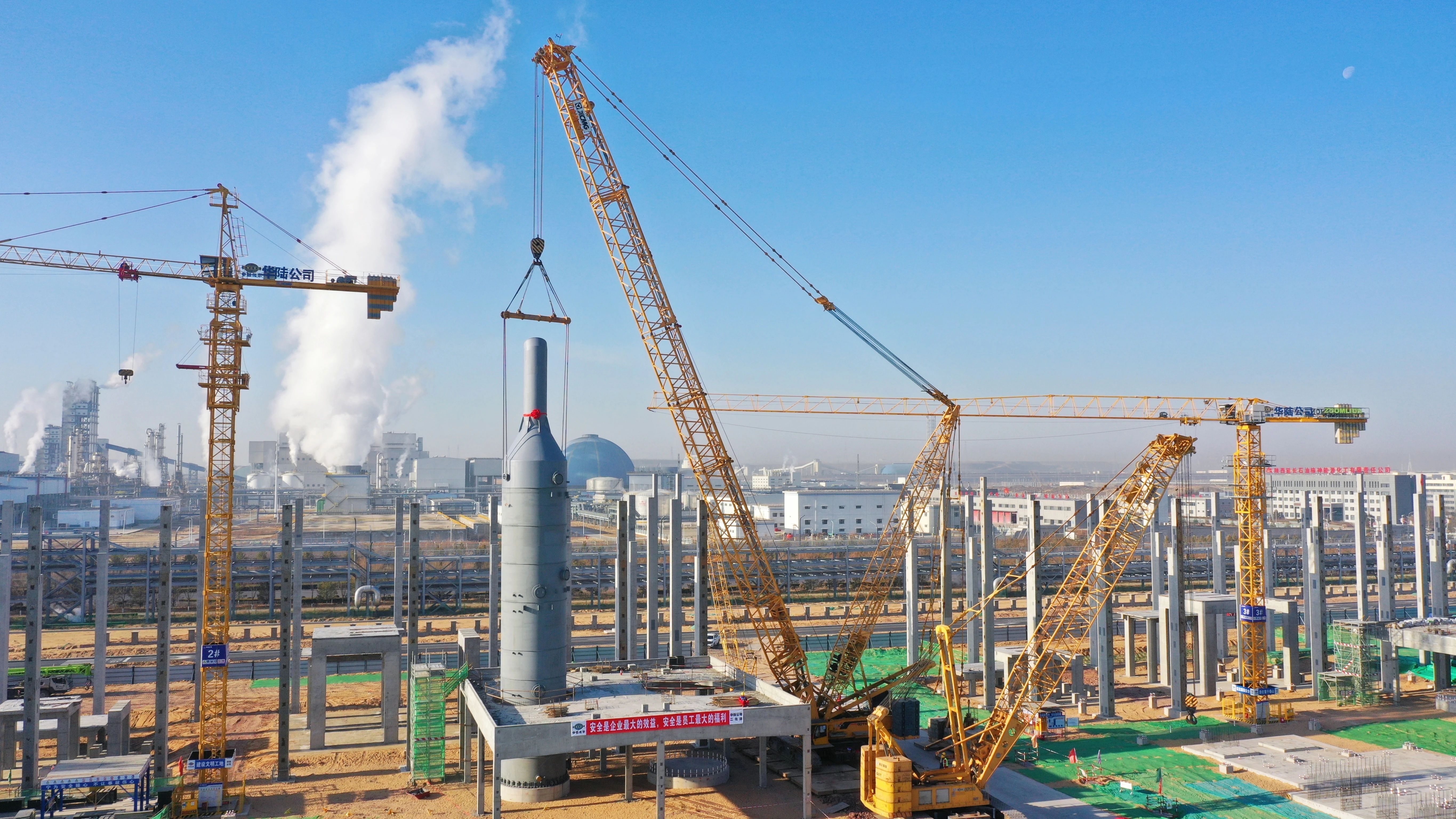 榆林化学二期一阶段项目首台大件设备吊装就位