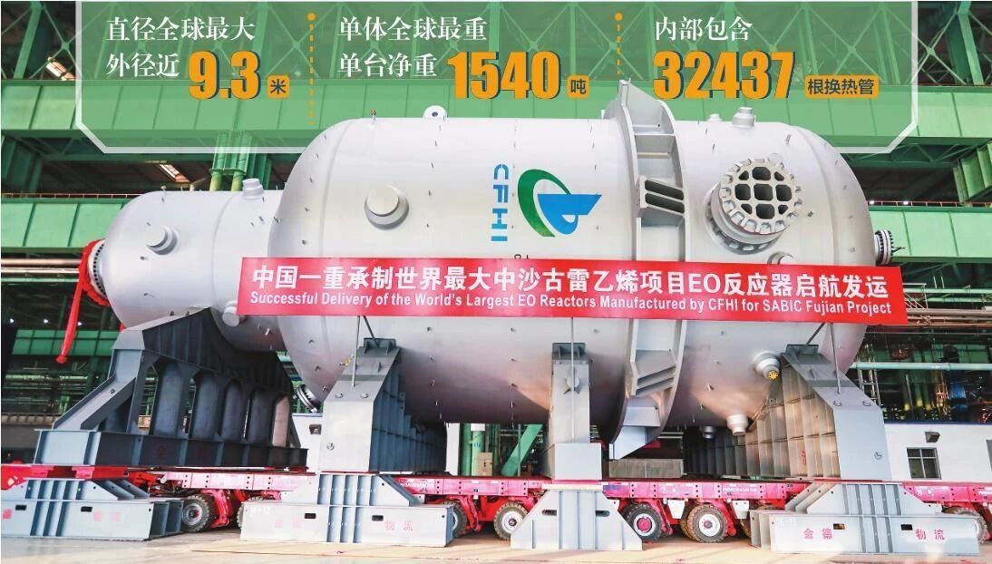 外径近9.3米,单台净重达1540吨,内部包含32437根换热管……近日,由中国一重承制的中沙古雷乙烯项目EO/EG装置EO反应器,在一重集团大连核电石化装备制造基地正式启航发运。该装备一举刷新直径最大、单体最重EO反应器的世界制造纪录,不仅彰显出中国一重的技术创新能力与制造实力,更凸显中国制造在国际重大合作项目中的核心价值。