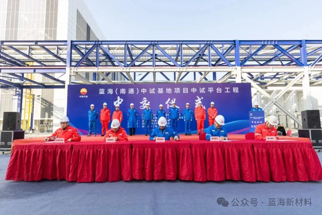 12月30日,蓝海新材料项目建设现场举行简短而热烈的仪式,蓝海(南通)中试基地项目中试平台工程如期实现中间交接。活动现场,移交方代表蓝海新材料项目建设管理部、监理单位吉林梦溪、总包单位上海寰球中试基地项目部、联合体承包单位吉林化建中试基地项目部相关负责人,共同与接收方昆冈先进制造南通分公司负责人签署《工程中间交接证书》,标志着蓝海新材料项目建设工作又取得重要进展和标志性成果。