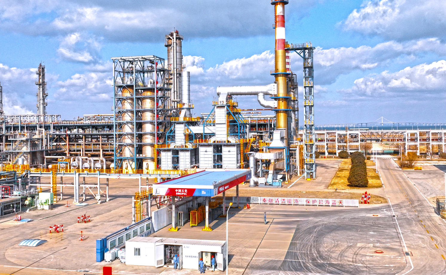 在青岛炼化氢能“产研加”示范园内的海河路加氢站,一辆辆氢能公交正在有序加氢。这座全国首座“碳中和”加氢站,既是氢能车辆的“补给站”,也是氢能的“集散地”。